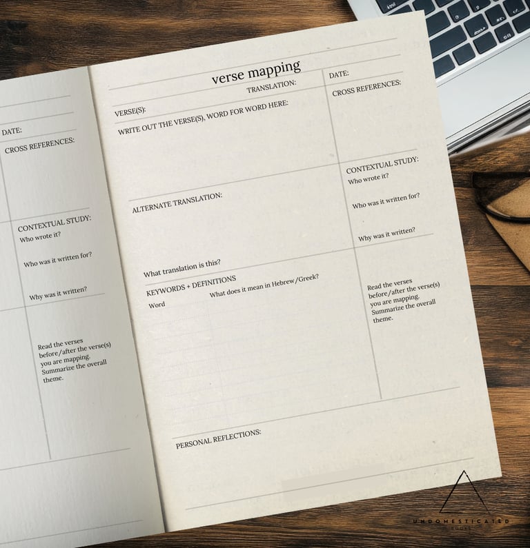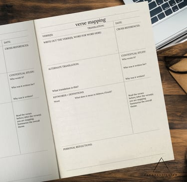 Verse Mapping: A section where you can select favorite or challenging to understand verses, and map out an analysis of that verse, including additional translations, context questions, word definitions, and your interpretation.