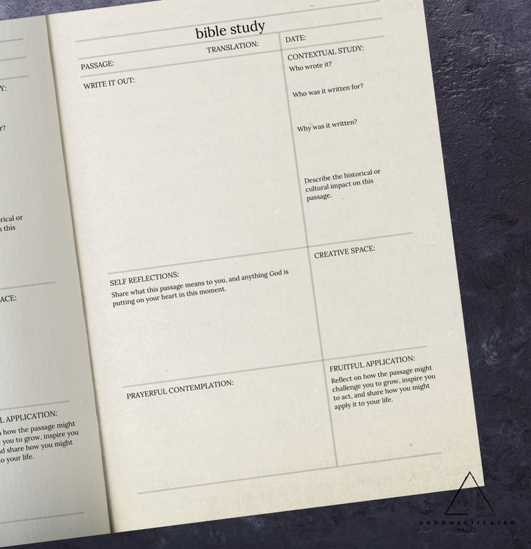 Prayerful Contemplation: Integrate prayer into your study. This space encourages you to write prayers inspired by your readings, fostering a deeper connection with God and reinforcing spiritual insights.