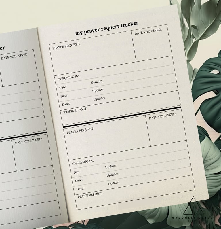 Prayer Request Tracker: It’s phenomenal to see how God answers prayers, and in this section, you can date and list your prayer requests, and return to this section later to document how God has answered your prayers or shifted your perspectives.